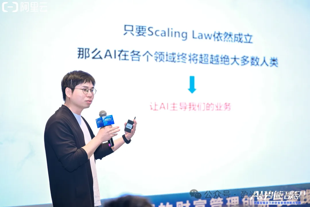 会上,盈米基金高级技术总监梁仲智发表主题演讲《盈米AI开放生态平台——盈米的AI协同转型探索》,深度剖析了企业在AI革命浪潮下的协同转型路径。