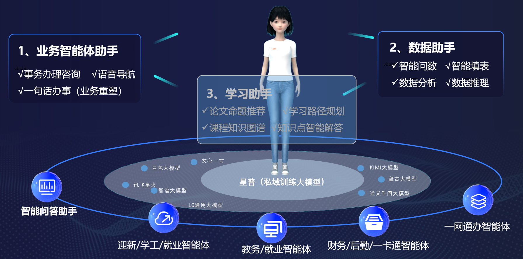 新开普作为国内高校智慧校园龙头企业,与华为云深度合作,打造全场景智慧校园生态。推出融合数字人、大语言模型等技术的多功能对话助手“小美同学”,在迎新、教务等场景提供智能服务。推出智慧校园AI解决方案矩阵,将AI能力融入现有产品,基于华为云孵化星普大模型,并融入华为云生态体系快速适配周边,基于昇腾AI系列硬件实现私有化部署。打造鸿蒙原生“完美校园”APP及私域校园超级APP,为高校提供软件+硬件+云服务的信息化解决方案。