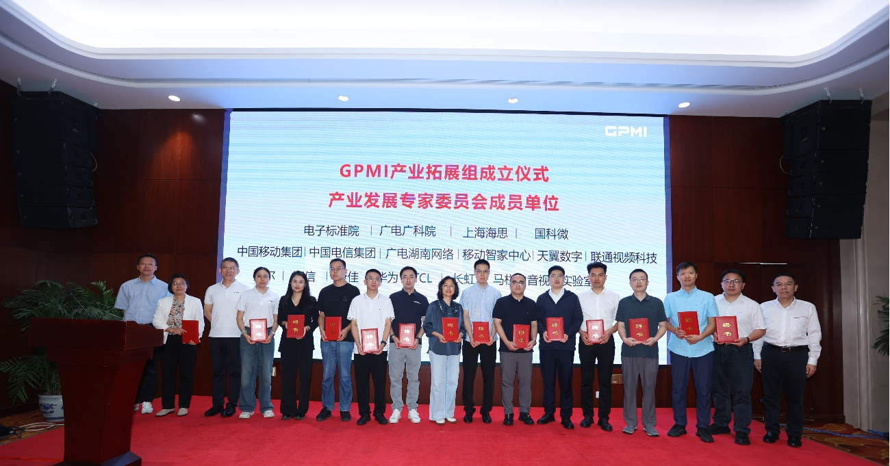 会议举行了GPMI产业拓展组成立仪式,并为GPMI产业发展咨询/专家委员会委员单位颁发聘书。包括中国电子技术标准化研究院、国家广播电视总局广播电视科学研究院、国家广播电视总局广播电视规划院、中国电信集团有限公司、天翼数字生活科技有限公司、中国移动通信集团终端有限公司、中国移动智家中心、联通视频科技有限公司、青岛海尔多媒体有限公司、海信视像科技股份公司、TCL电子控股有限公司、深圳康佳电子有限公司、马栏山音视频实验室、华为终端有限公司、长虹智慧显示公司、中国广电湖南网络股份有限公司、国科微电子股份有限公司、上海海思等在内的20多家企事业单位成为首批成员,标志着GPMI产业生态建设迈出了重要一步。