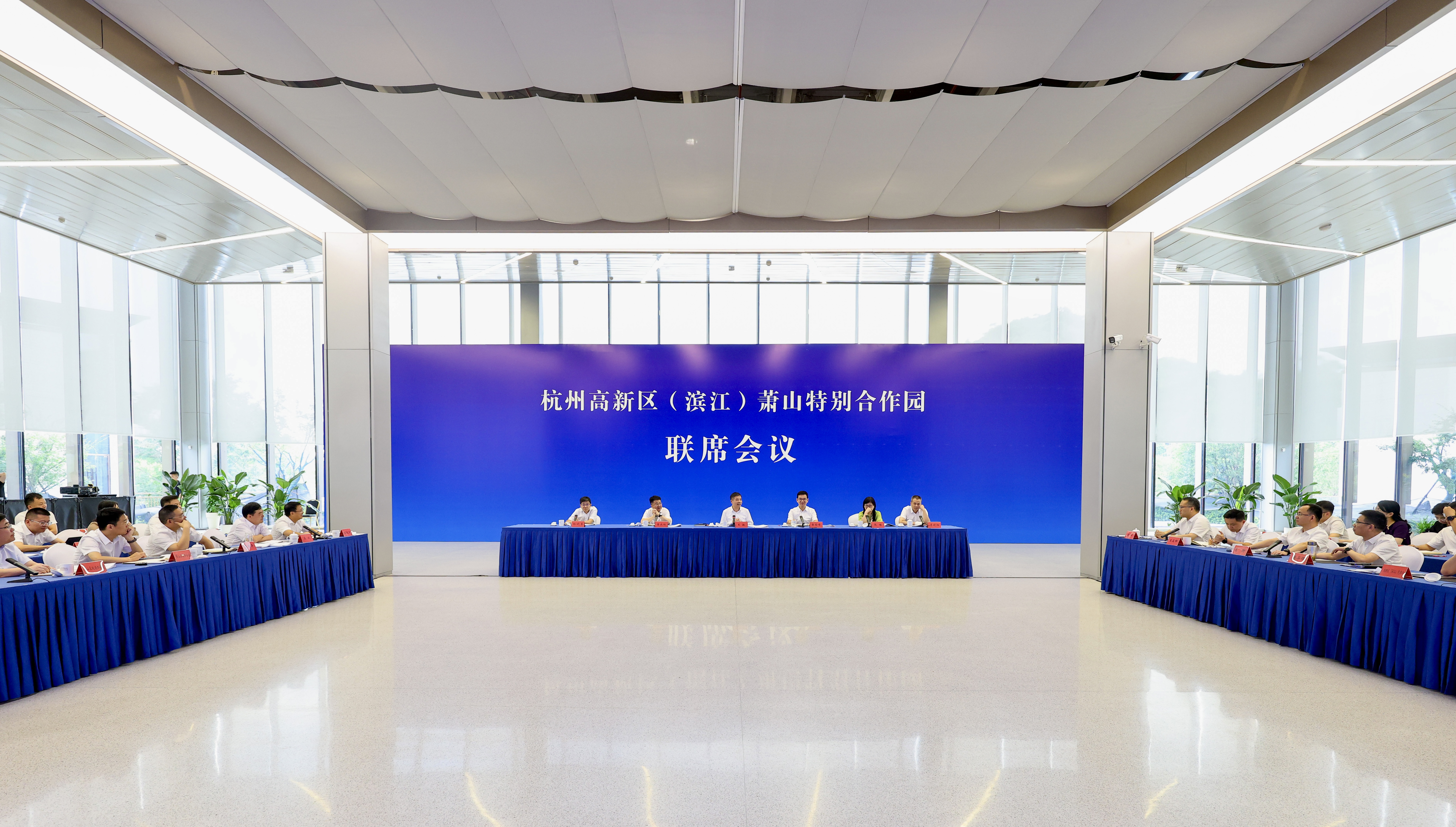浙江省生态环境厅党组书记、厅长王敏时任杭州市委常委、萧山区委书记,杭州市副市长、滨江区委书记章登峰时任滨江区委书记,双方达成共识,两区携手共进,高水平推进“中国视谷”建设,让特别合作园充分发挥高新技术产业引领辐射带动作用,在“1+1>2”的协同共赢中,为全省乃至全国提供区域协调、共同发展的示范样本。