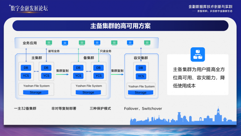 核心替换对业务连续性提出极致要求。崖山数据库可用可靠性对标国际标准,依托“主备共享集群”及“两地三中心”方案,在确保集群级高可用的前提下,实现机房级故障、区域级故障的无损容灾,达成业务零中断与数据零丢失,故障恢复时间(RTO)与数据恢复点(RPO)均达到行业顶尖水平。
