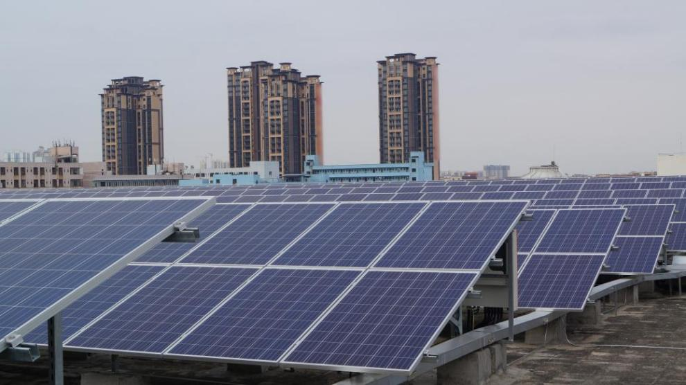 柯尼卡美能达东莞工厂屋顶上铺设的光伏面板