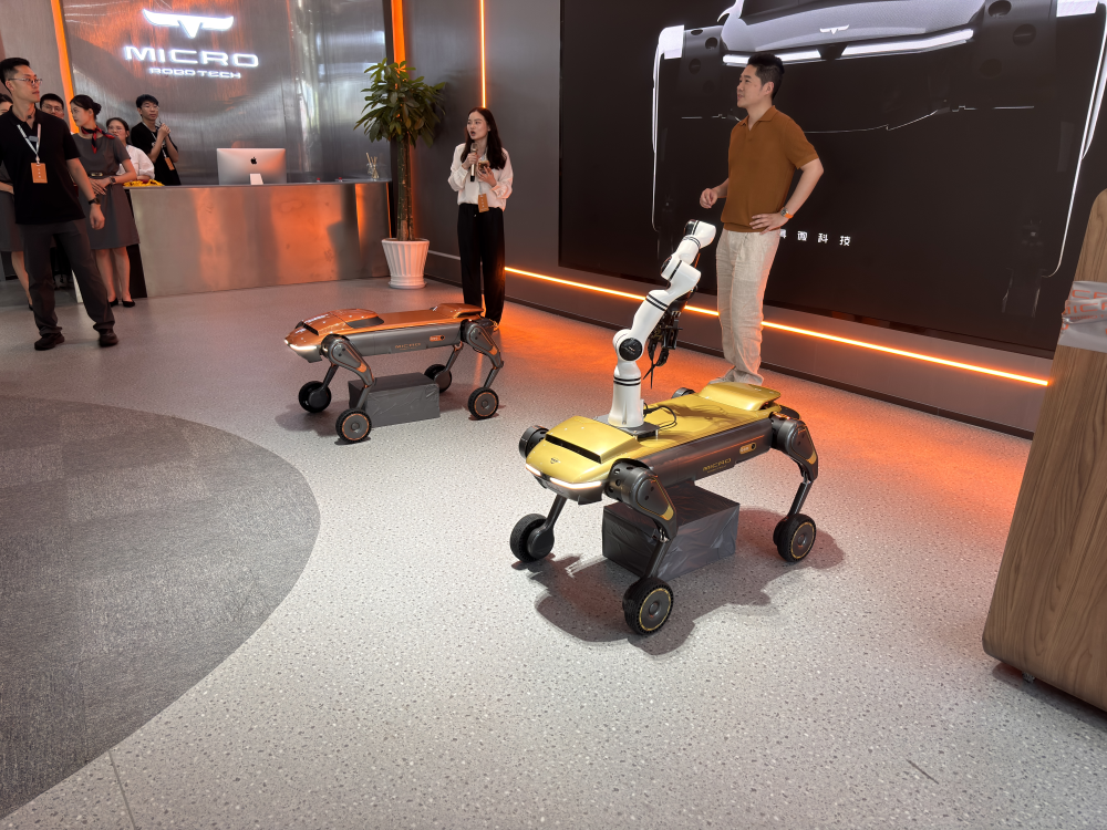 7月5日,杭州具微科技有限公司(简称“具微”)宣布,其全球首家具身智能4S店在杭州钱塘区正式开业,同时旗下首款轮式四足机器人“MOVENEW T1”实体首次面向公众亮相。此次活动汇聚了政府领导、行业专家、企业合作伙伴(阿里巴巴、字节跳动、海康威视、三星、oppo等)及媒体代表(央视新闻、中国日报等)等逾100人,也预示着四足机器人从专业领域向消费级的全面渗透。