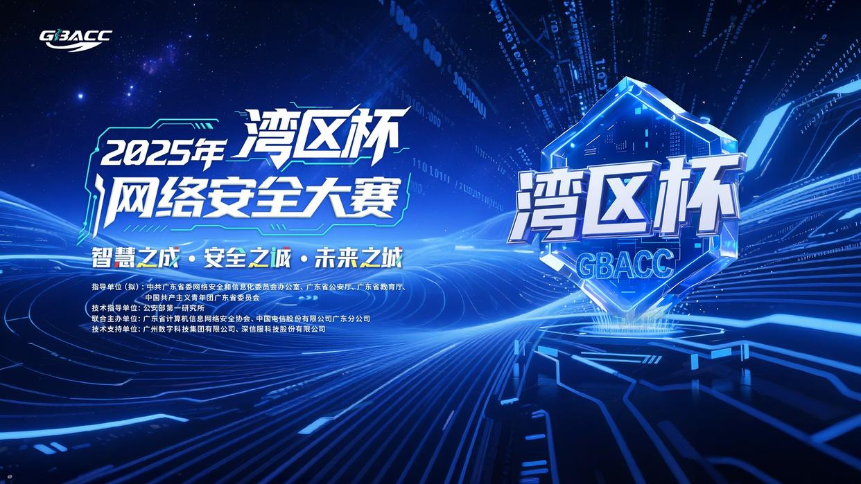 在数字浪潮席卷全球、科技产业变革加速的当下,网络安全已从单一技术议题,跃升为关乎国家战略、企业发展与个人安全的核心命题。在此背景下,由广东省委网信办、省公安厅、省教育厅、共青团广东省委员会联合指导,公安部第一研究所提供技术指导,广东省计算机信息网络安全协会携手中国电信广东分公司,重磅推出首届 “湾区杯” 网络安全大赛。大赛紧扣“智慧之成・安全之诚・未来之城”这一主题,聚焦于粤港澳大湾区网络安全人才的培育以及前沿技术创新。广州数字科技集团有限公司、深信服科技股份有限公司等企业作为技术支持单位,彰显了赛事在政策引导、资源整合、技术支撑等多方面的雄厚实力,确保大赛在攻防技术标准制定、赛事环境搭建、安全保障体系构建等层面达到国内顶尖水准,为赛事权威性筑牢根基。