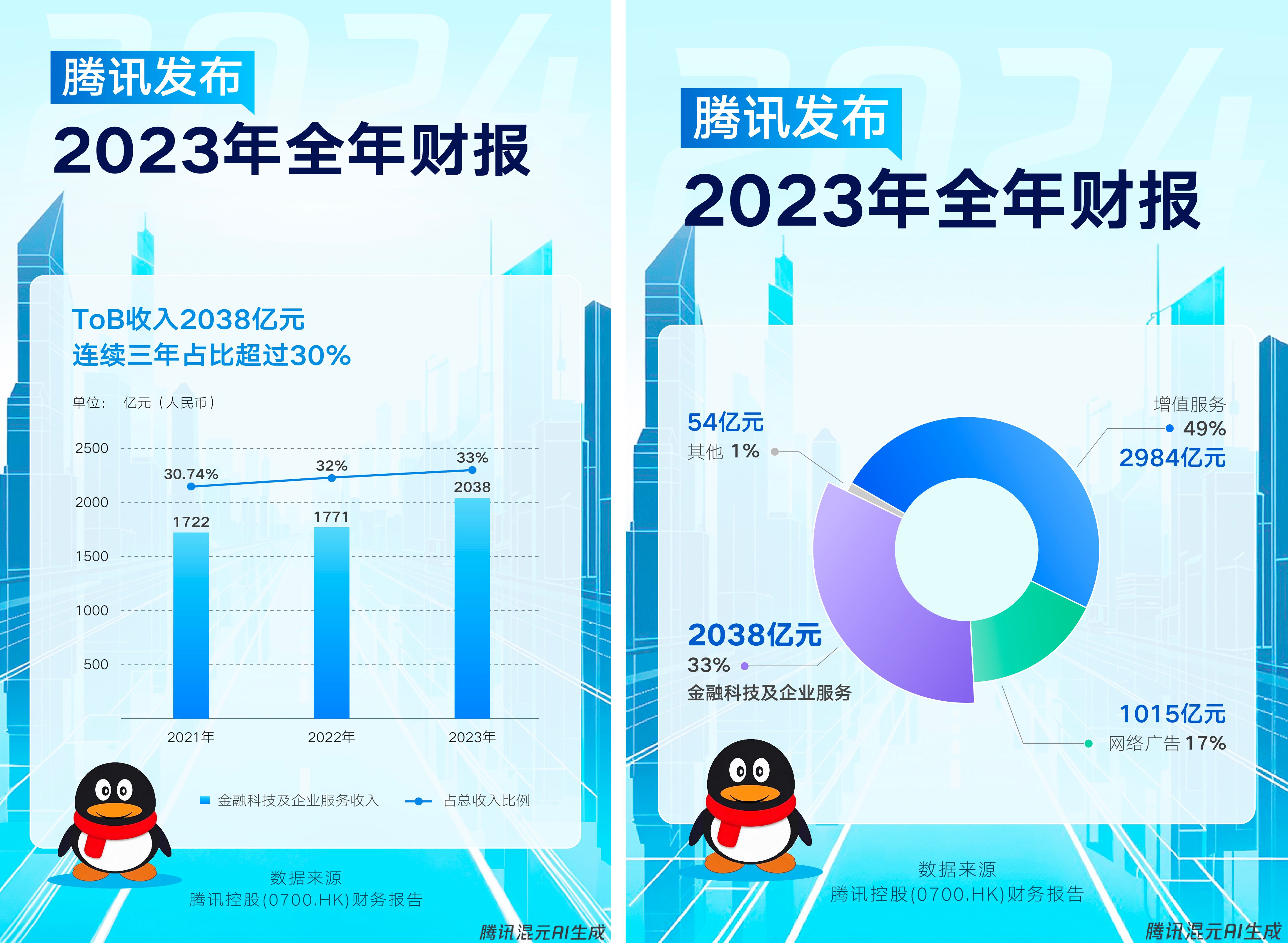具体到云业务,2023年腾讯云收入稳步增长,助力企业服务收入实现约20%的同比增加。