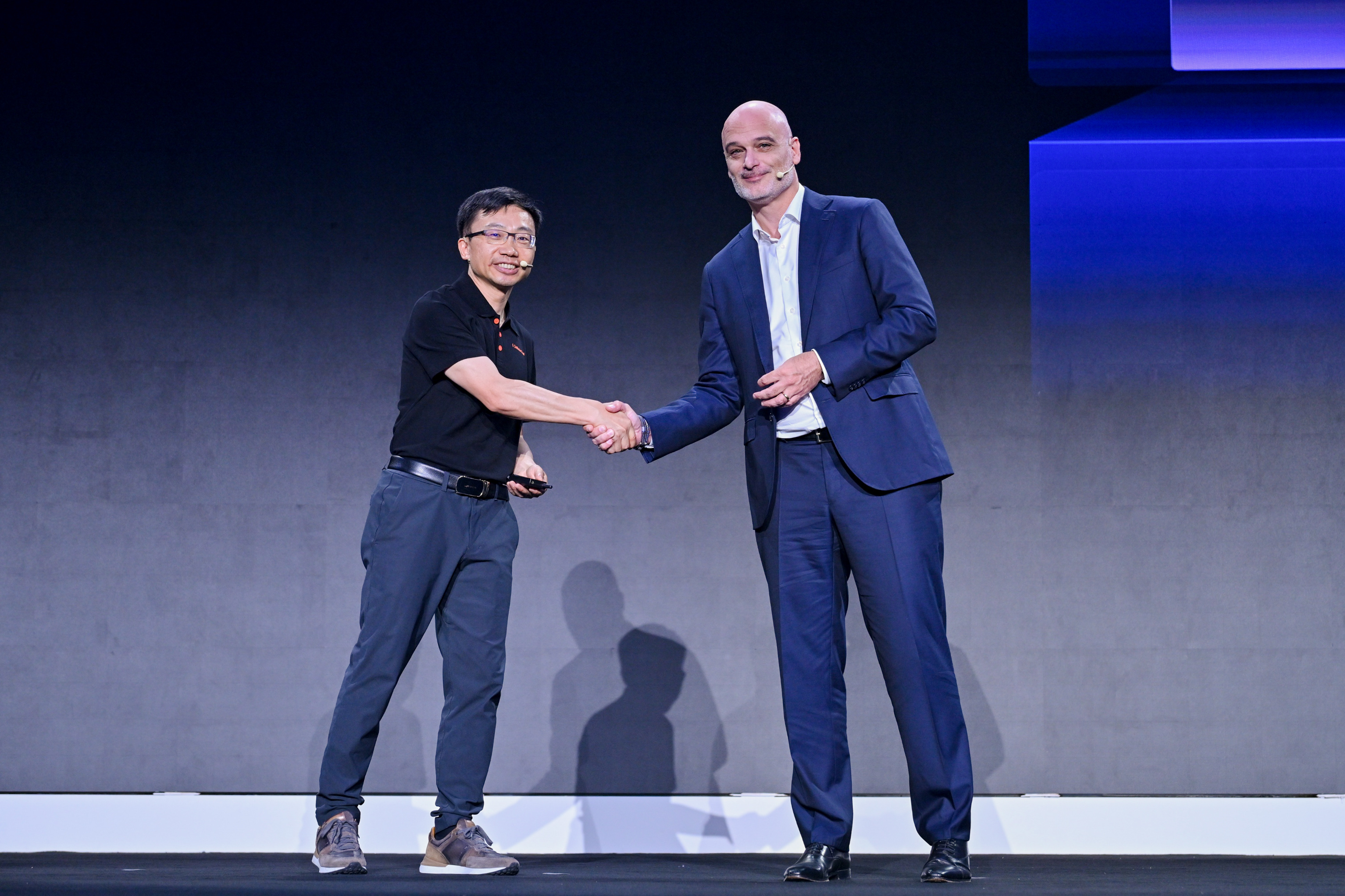 图注:SAP 行业与全球化首席产品官兼 SAP Business Suite 首席营销官 Eric Van Rossum(左) 与阿里云智能集团弹性计算产品线负责人,存储产品线负责人吴结生在云栖大会发布战略合作新进展