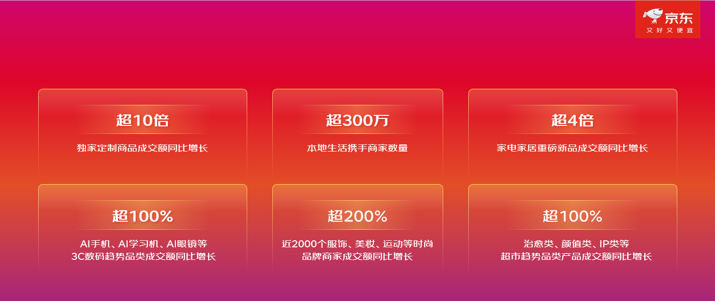 此外,京东超市多款包销产品上市即迎来热销,云南包销玫瑰成交额同比增长5倍、海飞丝头皮肌底系列新品成交额同比增长90%、火火兔AI早教学习机V12京东独家首发新品上新破百万。京东“超级试用日”成效显著,10月11日试用频道订单同比增长5.74倍,品牌新用户数同比增长5倍,超2800个品牌订单翻倍。