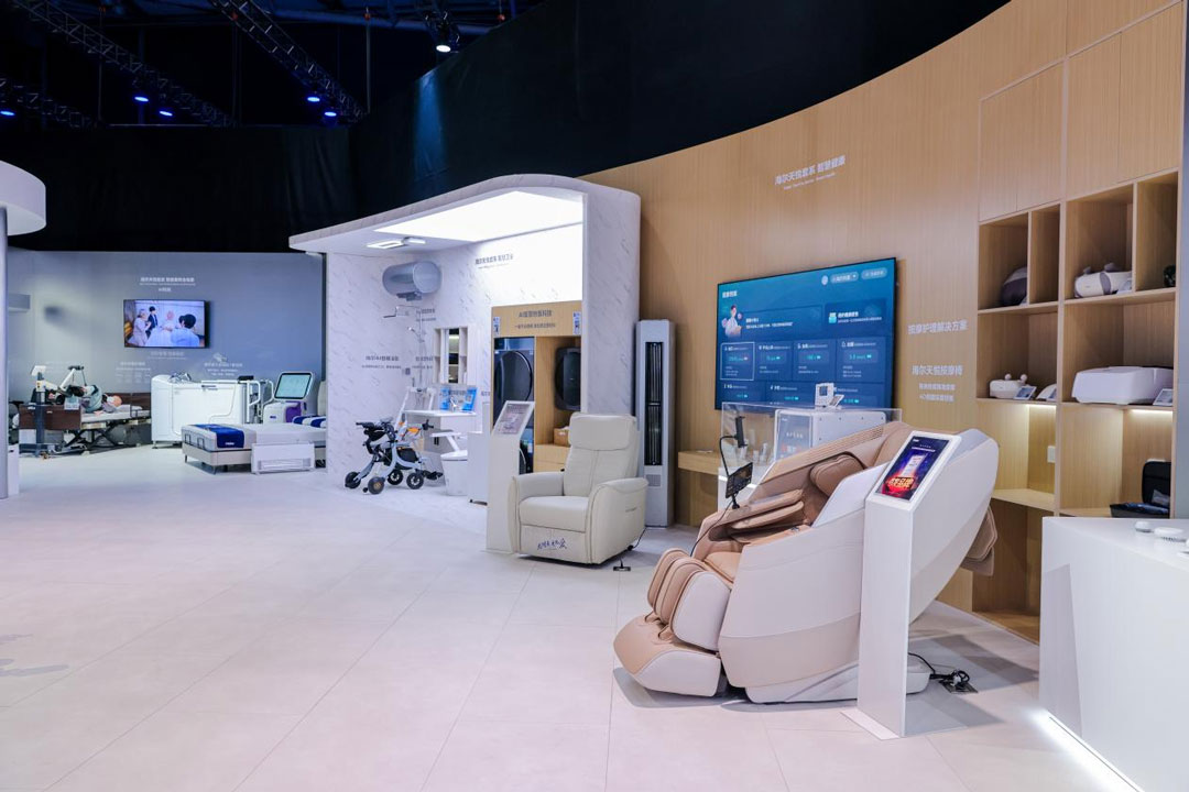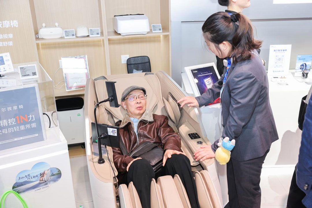 智慧健康场景是海尔康养AI技术与健康管理深度融合的体现,聚焦老人日常健康监测与保健养生需求,现场展出了智能按摩椅、按摩助起沙发等产品。海尔按摩椅的AI智能健康检测可适配老人身体骨骼肌肉变化,定制专属按摩模式,局部按摩仪则精准缓解头颈肩、腰腹等部位疲劳,现场的佩戴体验让观众亲身感受便捷的居家健康服务,真正实现“健康监测+日常保健”一体化。