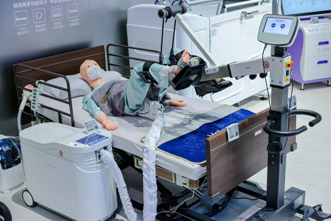 展区内,海尔天悦AI智能二便机器人成为众人驻足围观的焦点。对于家有失能老人的照护者来说,它带来了实实在在的减负——其搭载的AI智能检测系统可精准识别大小便,实现吸抽、清洗、烘干全流程无人化照护。一旁搭配的天悦超低电动护理床同样引发关注:床面可降至膝盖高度,大幅降低老人坠床风险,也可升至适宜高度,让照护者不用再弯着腰受累,起背抬腿的联动设计既能帮助老人调整舒适姿势,也能有效降低长期卧床容易出现的褥疮风险。一位50多岁的李阿姨感慨:“这些产品确实减轻了我们家属和照护者的负担和焦虑,希望海尔能研发出更多的适老产品。”