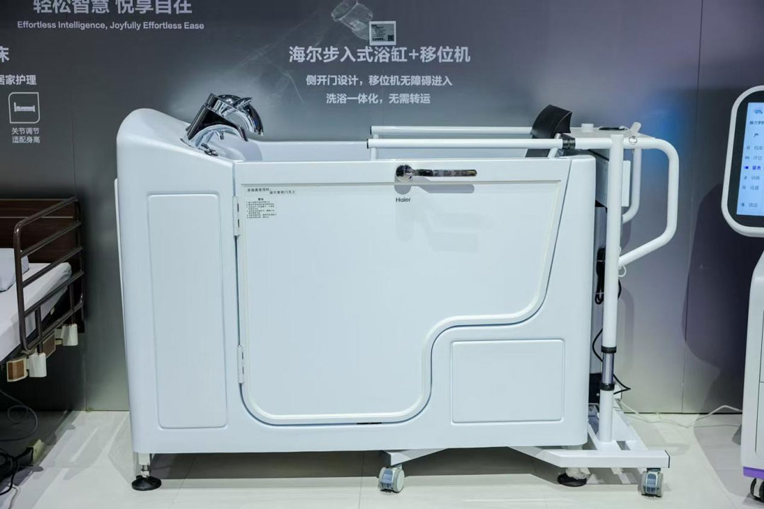 展区内的步入式浴缸同样备受瞩目,这款产品以侧开门搭配移位机的人性化设计,让老人无需搬动即可轻松进入,真正实现无障碍洗浴,让每一次沐浴都更有尊严。