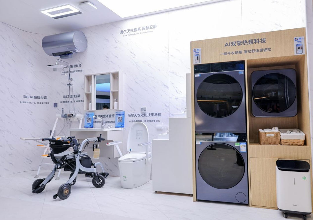 本次展会上,海尔首次面向银发人群推出行业首套AI智慧康养套系——天悦套系。海尔天悦零添加电视、立式空调、热水器、壁挂洗衣机、外骨骼机器人等多款套系产品融入到海尔智慧康养的睡眠、卫浴、健康等五大核心场景里,让参观者零距离感受科技如何为生活减负、让人生更自在。作为海尔针对居家养老痛点,与用户共创的行业首套全品类AI智慧康养套系,它解决了当下银发族对智能产品“不会用、怕麻烦”的痛点,也为子女关心的独居父母安全与健康问题,提供了实实在在的全方位保障。