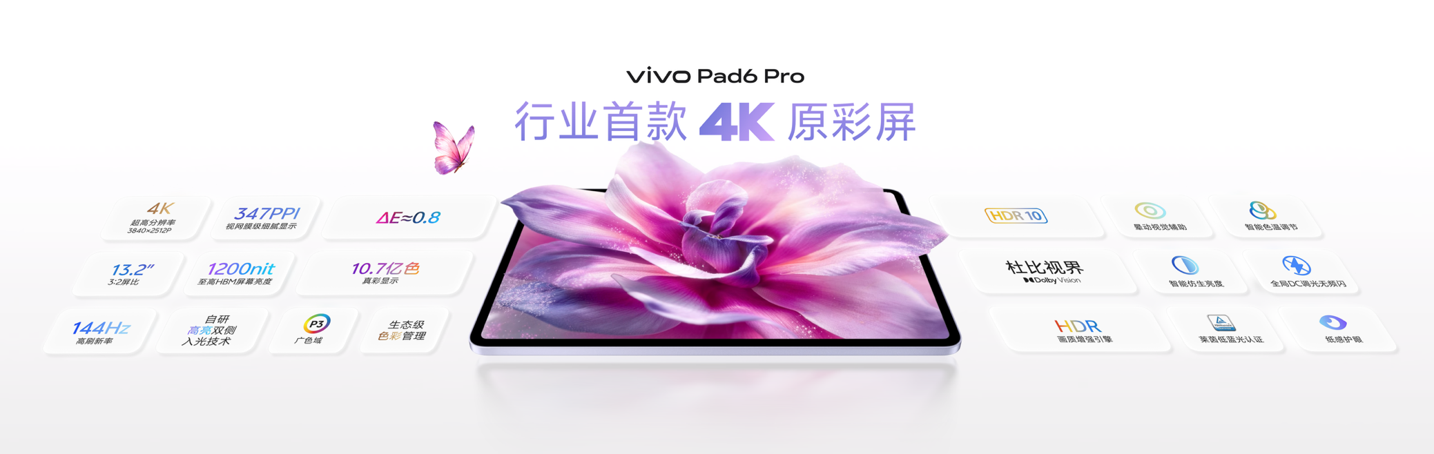 vivo Pad6 Pro 的核心亮点在于其搭载的13.2英寸4K原彩屏,支持杜比视界与144Hz高刷新率,像素密度达347 PPI。在行业普遍停留在2.5K分辨率的背景下,vivo率先将4K屏引入安卓平板,意图在高品质影音与专业创作场景中建立差异化优势。色彩管理方面,vivo引入生态级色彩管理体系,确保从素材导入到成片输出的色彩一致性,满足创作者对画面准确性的严苛要求。