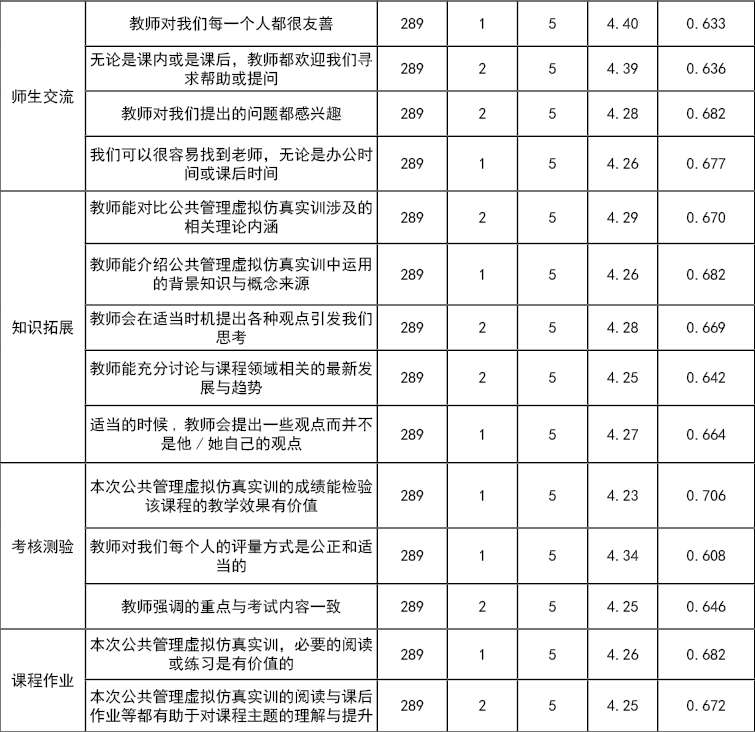 调查显示,接受了公共管理虚拟仿真实训的同学普遍认为实训效果明显,有效提升了学生团队协作、决策能力及理论实践结合水平,学生普遍认可实训效果。