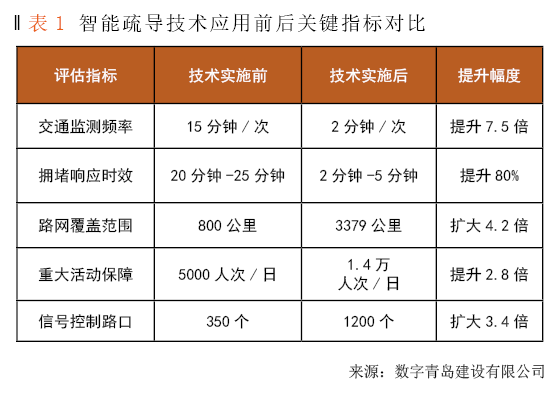 基于上述智能疏导技术应用案例,采用量化对比分析方法,选取监测频率、响应时效、覆盖范围、活动保障、信号控制等关键指标,对技术实施前后的系统性能进行综合评估,验证智能疏导技术的实际应用效果。