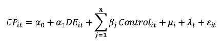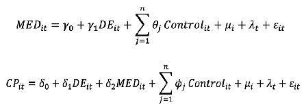 其中,表示i地区t年的城乡共同富裕水平,表示数字经济发展水平,为控制变量集合,和分别表示个体固定效应和时间固定效应,为随机误差项。