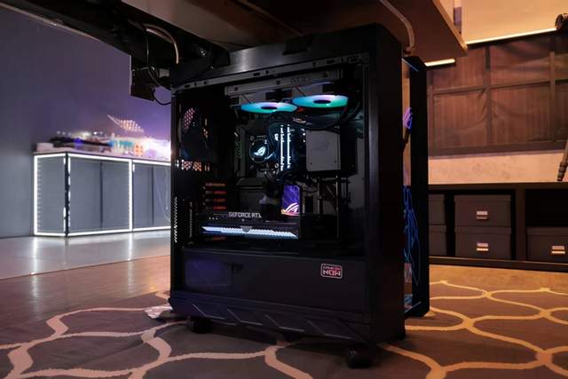 首先,在这间还原了Tony大叔日常娱乐、办公、摄影的高端电竞房间中,高端豪华的电竞装备可谓应有尽有!而核心装备,就是这台ROG全家桶主机。该主机搭载了ROG MAXIMUS XIII HERO主板和ROG STRIX GeForce RTX™ 3090显卡,以及ROG STRIX LC Ⅱ 280 ARGB飞龙二代一体式水冷散热器、ROG STRIX XF120风神风扇、ROG STRIX 雷鹰1000W金牌全模组电源、ROG STRIX HELIOS太阳神机箱等高性能硬件。