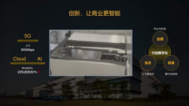 在华为,我们通过自己的实践,充分利用创新的5G技术,比如当前实现的800Mbps上行大带宽能力,未来将达到6Gbps、还有华为云上的AI训练平台,这些创新能力让整个产线更加智慧,更加柔性,更有效率,工人的劳动环境也获得了很大的改善。