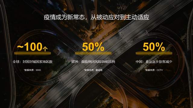 2020年突如其来的疫情对整个社会带来前所未有的冲击。世界卫生组织的统计显示,去年有超过100个国家采取了封国封城的措施,这种人类历史上前所未有的社交隔离,对经济活动运行及个人生活带来了巨大的影响。据麦肯锡的研究报告,2021年欧洲差不多有一半的中小企业可能面临倒闭的风险。对个人的影响,我想大家都有体验,在刚刚过去的牛年春节,中国返乡旅客数量比去年下降了50%。