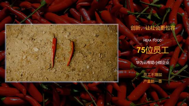 两年前,华为帮助该企业引入了基于人工智能的辣椒分拣方案。作为一个小微企业,他们不需要买昂贵的硬件服务器,也不需要高水平的IT人员,只需要配置简单的摄像头和联接设备。基于华为云服务,该企业实现了辣椒智能分拣,大幅提升了调料生产效率和品质。去年在疫情期间,他们很难招到新的人手,正是有了人工智能的帮助,他们在人手完全没有增加的情况下,产量增加了一倍。我相信,面向未来,全球各地无数的小微企业都需要得到这样的技术帮助。