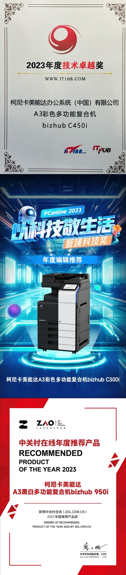 bizhub 950i荣获中关村在线“2023年度推荐产品奖”