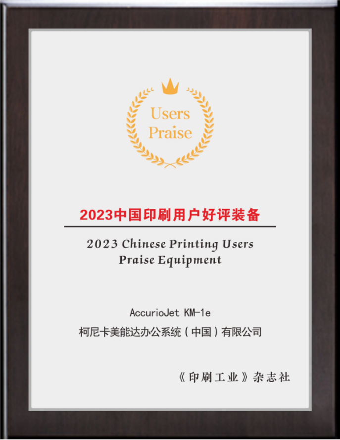 AccurioJet KM-1e斩获《印刷工业》杂志社“2023中国印刷用户好评装备奖”