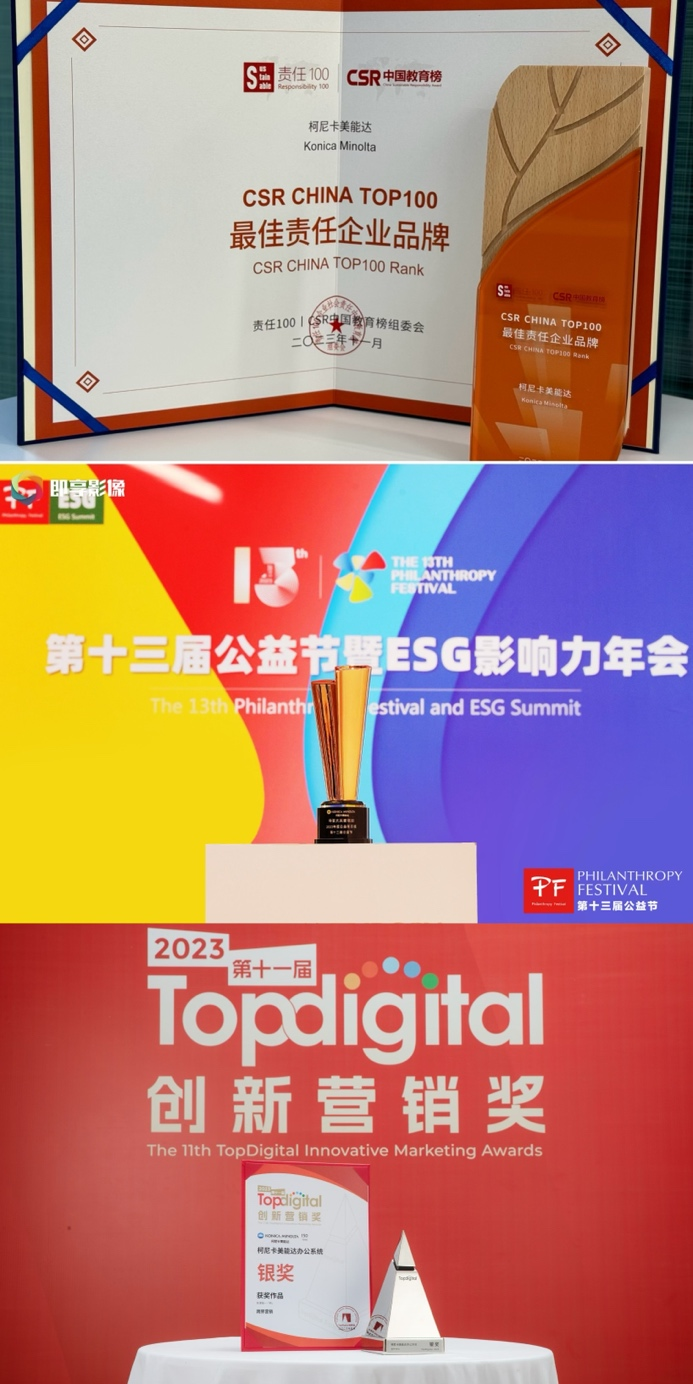 2023年是全球领先的数字化整合增值服务商——柯尼卡美能达加速数字化变革的关键一年。恰逢集团创立150周年,柯尼卡美能达持续精耕核心的影像业务领域,凭借其前瞻性的数字化洞察、优质产品与服务以及持续践行企业社会责任为构建可持续发展的社会所做出的杰出贡献等,揽获《数字商业时代》2023年度“智造中国”数字化转型赋能先锋奖、IT168“2023年度技术卓越奖”、《数字商业时代》2023年度“智造中国”ESG特别贡献奖、CSR中国教育榜2023年度“CSR CHINA TOP100最佳责任企业品牌”等20个重磅年度奖项,赢得了权威媒体、专业评奖机构、业界及用户的广泛认可与赞誉。