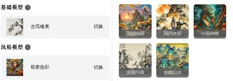 AI闪绘深度分析大量中国艺术家和艺术作品的数据集,优化其算法,使之更符合中国人的审美与体验。不仅继承古代大师经典,还融合现代流行创意,特别推出古风唯美、水墨丹青、国潮插画、金碧山水等中式特色模型,让用户能快速创作出具有中国特色的作品,展现东方之美与中式之魂。
