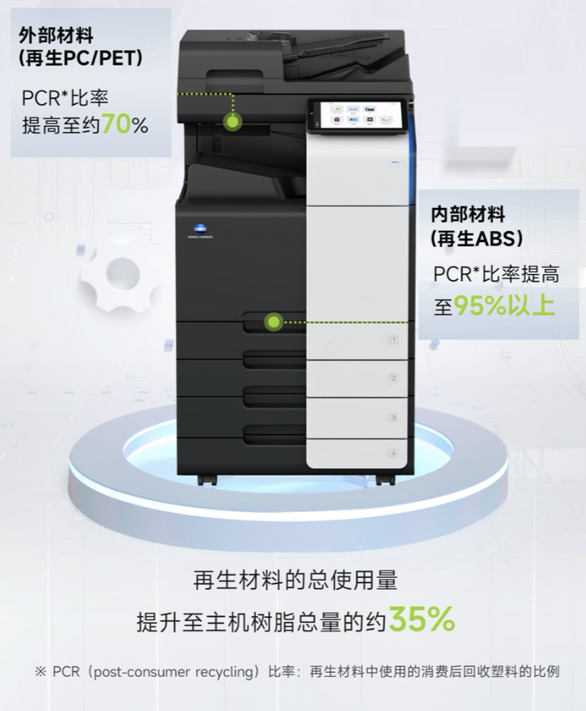 柯尼卡美能达旗下复合机产品中再生材料的使用比例