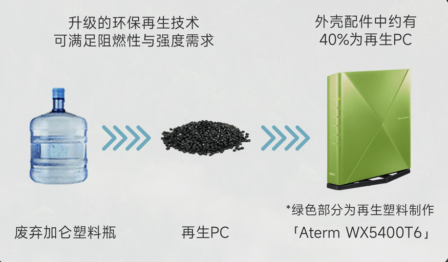 柯尼卡美能达利用升级的环保再生技术并携手NEC Platforms共同开发将再生塑料应用于家用 Wi-Fi 路由器(Aterm)的外壳配件中