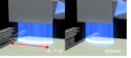 新产品采用了投影光学系统,可实现1.5μm※3(L/S※4)的高分辨率,且一次曝光幅度扩大约1.2倍※5。该投影光学系统曾用于“MPAsp-H1003H”(2022年7月发售),可用于生产使用第8代玻璃基板※6一次性曝光、用于大型电视等的65英寸面板。在一块玻璃基板上,如果生产智能手机面板等产品,此前需要6shot曝光,而新产品仅需4shot曝光,生产性能大幅提升。此外,在生产车载横向大型特殊显示器时,也可以做到无接缝2shot曝光。且,玻璃基板搭载台的驱动速度提升约60%,tact time提升约14%※7,有效提升了量产效率。