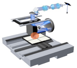 佳能的FPD曝光设备采用镜面投影方式。镜面投影方式由大凹面镜,小凹面镜和梯形镜组成。通过将光照射在单元上方的光掩模上,光掩模上的电路图案就可以在经过5次反射后准确地转印在玻璃基板上。约1μm(1mm的千分之一)的精细电路图案转印到大型玻璃基板上时,凹面镜特别关键。佳能具有较强的光学技术和生产技术,因而能够研发生产直径约1.5米的大型凹面镜。