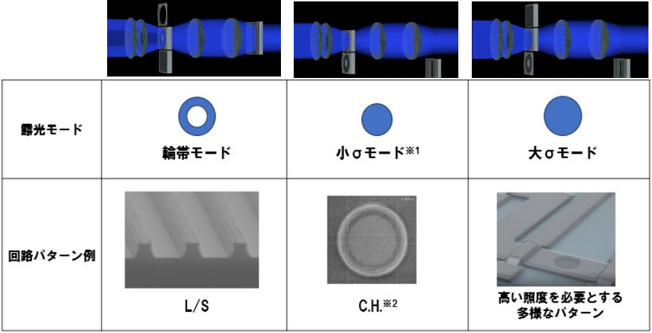 新产品沿用了曾经搭载在“MPAsp-H1003H”上实现了超分辨率技术的照明模式切换机构,可根据需要曝光图案的种类进行照明模式切换,从而适配各类制造工序的曝光。
