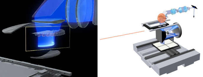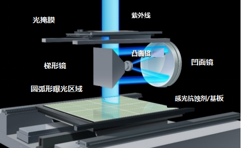 佳能的曝光方式在光学上具有完全对称的结构,优点是在原理上不会产生因斜射光引起的彗形像差(渗光),也不会因使用镜头的折射光学系统引起光的波长差异进而导致的色差(色偏)。在圆弧形的范围内能够得到优良的成像特性,通过扫描该圆弧形的曝光区域即可实现大面积高分辨率性能。