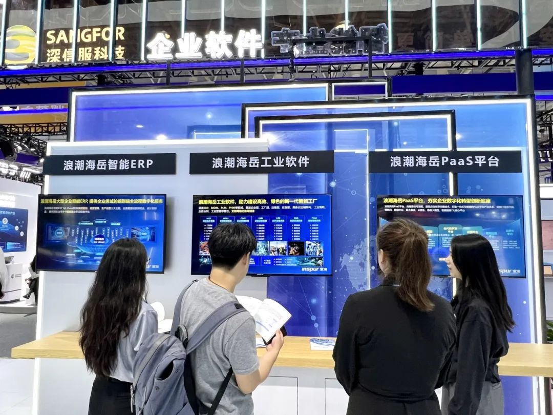 在现场体验区,全面展示浪潮海岳智能ERP、工业软件、PaaS平台的技术实力,以及在推动企业全业务数智化转型方面的典型实践。