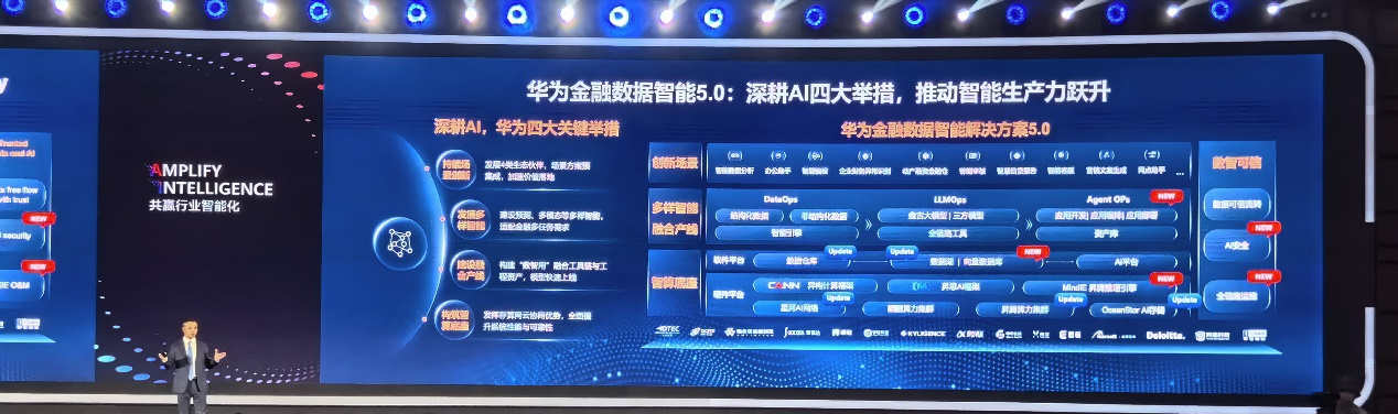 通过携手生态伙伴,华为数据智能解决方案5.0持续推进金融数据和AI成为新的数字生产力,高效赋能业务,并在四个领域全面升级: