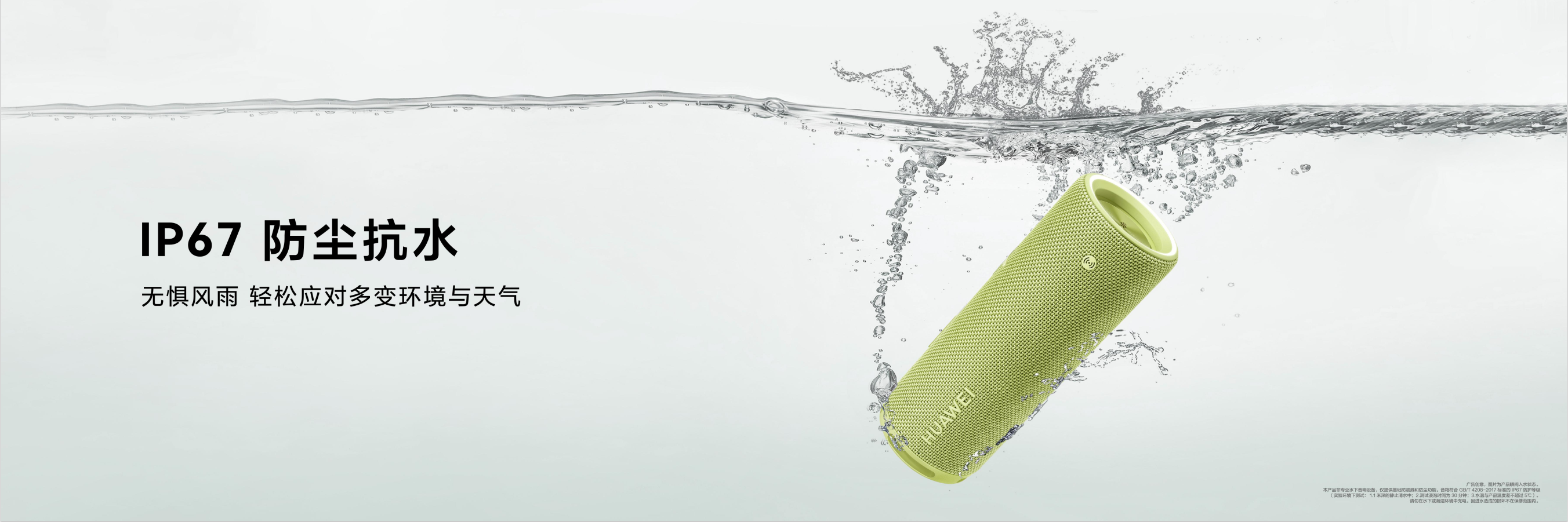 作为一款小巧的便携式户外音箱,HUAWEI Sound Joy 2的机身整体约为一瓶矿泉水的大小,重量也仅约700g,能被单手轻松握持,附带的挂绳也更方便用户随身携带。在选材方面,HUAWEI Sound Joy 2采用超立体感包布材质,具备IP67级防尘抗水效果,使用户在雨天等户外场景下也能放心畅听。