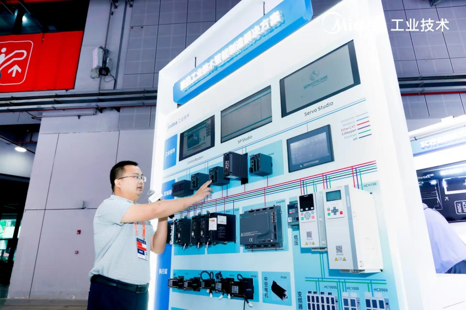为助力工业企业应对行业挑战,美的工业技术在本次工博会针对制造业细分领域展示对于创新技术、产品和解决方案的能力,内容涵盖自动化解决方案、机器人部件与控制解决方案、工商业能源管理,助力工业企业迈向智慧工业与践行绿色可持续发展。美的工业技术旗下品牌高创在多年孵化后,已经从直驱领域领导品牌,成长为覆盖PLC、直驱、伺服、HMI、减速机等多个品类的综合自动化品牌;合康作为传统高压变频器品牌,成长为包含高低压变频器、工商业光伏的工业绿色能源管理品牌。本次展出除了带来完整解决方案之外,还有多款创新产品发布: