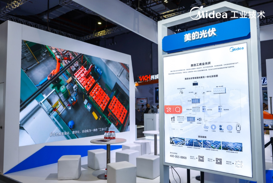 此外,针对工商业企业日益增长的能源转型需求,美的工业技术的绿色能源解决方案,包含美的工商业光伏、EMS能源管理平台、科陆工商业储能及配电产品。该方案可以融合园区的各类光伏发电、充电桩等设施,形成绿色能源生产、存储及应用的分布式绿电系统,助力工商业园区绿色可持续发展。
