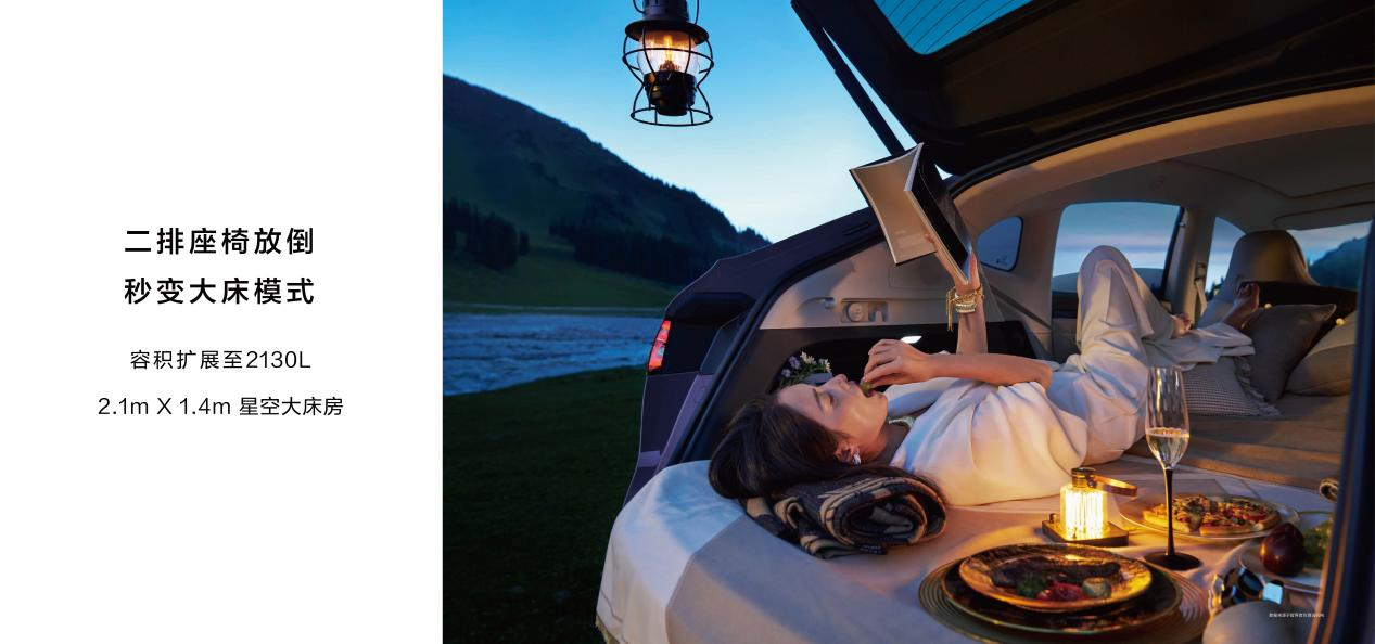 乘坐体验超舒适,智界R7储物空间同样突破想象。创新三层后备箱拥有837L超大空间,可轻松收纳户外旅行时的行李。当后排座椅完全放倒后,后备箱联通后排扩展容积高达2130L,可秒变2.1m X 1.4m星空大床房。
