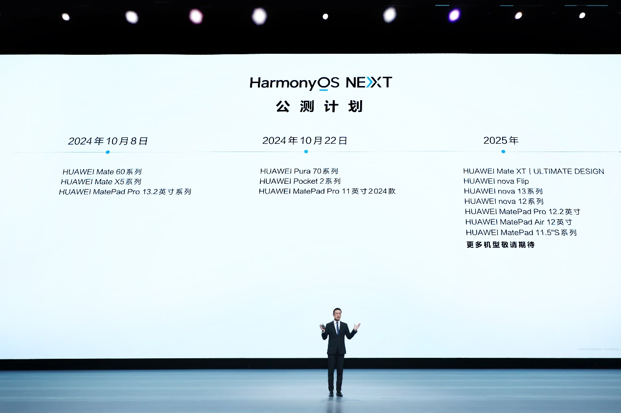 10月22日起,HarmonyOS NEXT正式开启HUAWEI Pura 70系列、HUAWEI Pocket 2系列、HUAWEI MatePad Pro 11英寸2024款等机型公测。