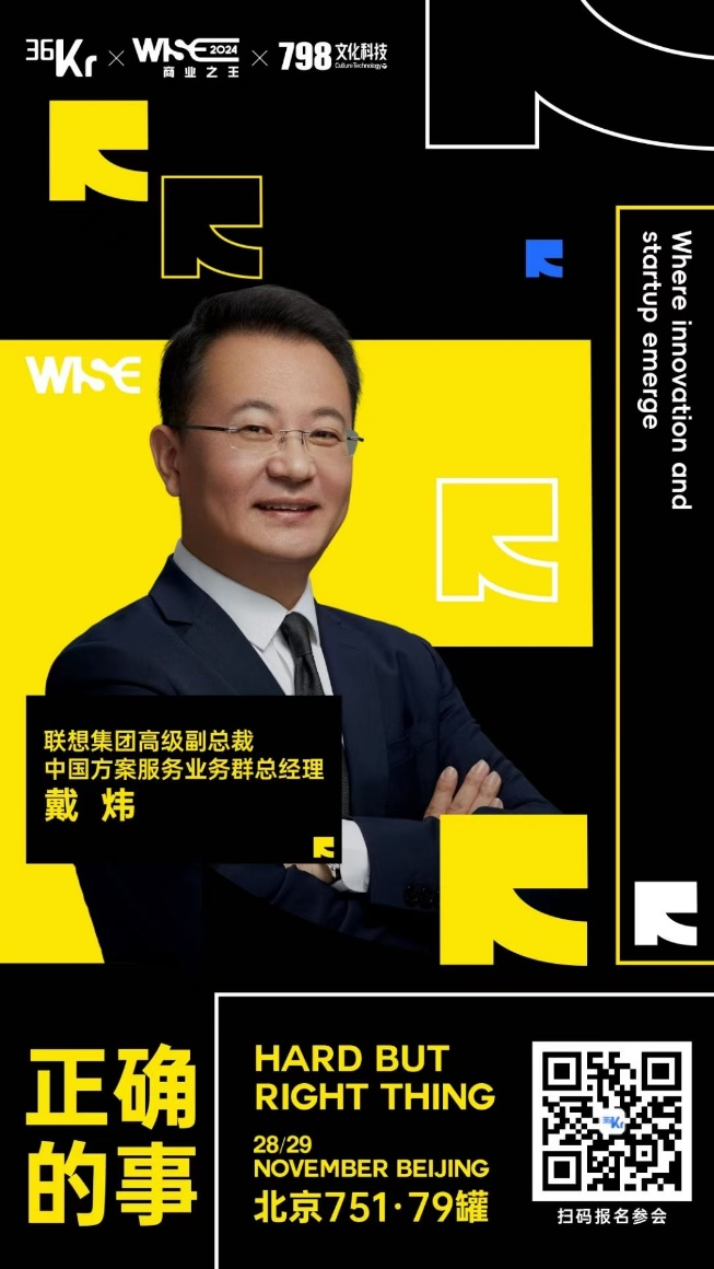 11月28日,作为中国商业领域的全明星盛典,36氪年度商业大会“WISE2024 商业之王”将落地北京。此次大会前期发布的信息显示,联想集团高级副总裁、中国方案服务业务群总经理戴炜将出席大会,并正式推出业内首个面向中小企业的IT服务智能体,致力于以大模型和智能体技术,加速中小企业智能化转型。