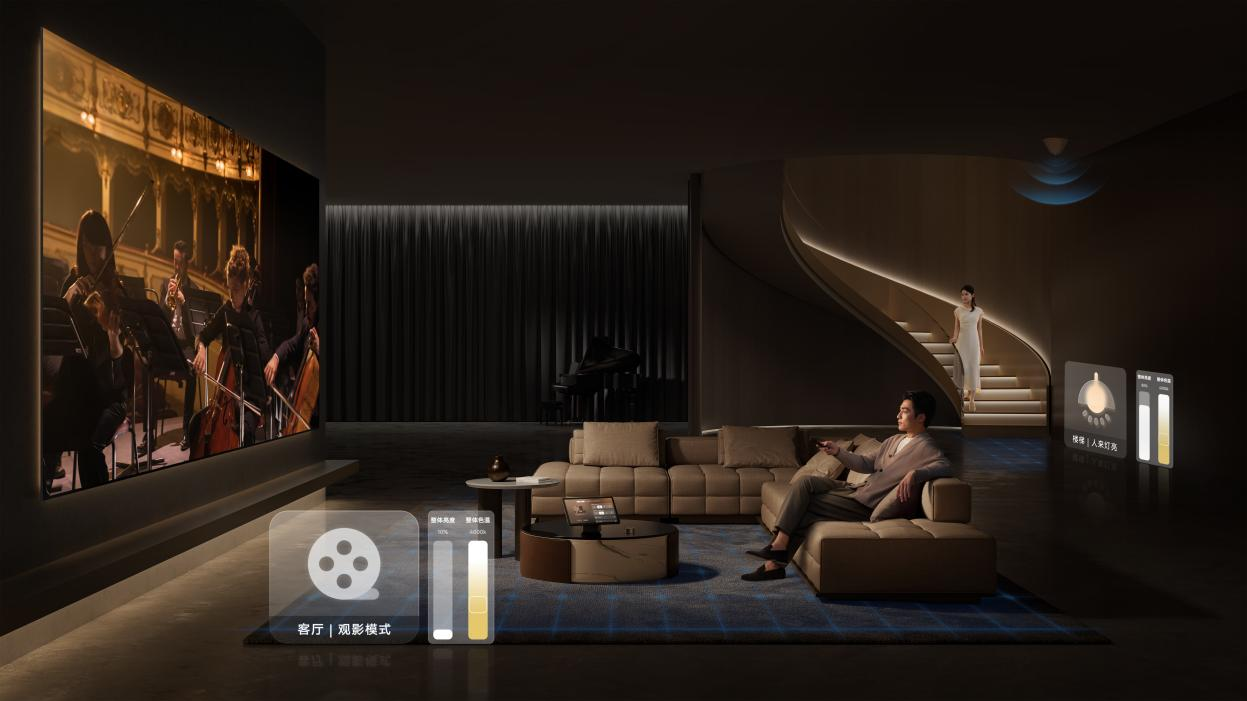 为提升多维感官高阶享受,华为鸿蒙智家还打造了剧院般的影音-客厅影院,以全屋音乐吸顶音箱联动智慧屏,为用户打造震撼的家庭影院。得益于HUAWEI SOUND 巅峰音质所具备的音源传输播放全链路声学设计,以及全屋音乐吸顶音箱与华为智慧屏 音画的深度联调,华为鸿蒙智家将5.1.2影院般的环绕声场搬到用户家中,用户足不出户即可享受如临其境的视听体验。同时,华为鸿蒙智家还合作专业影音室服务商,重磅打造私人影院,支持一站式、全套定制影音室解决方案,带来居家高阶智感享受。