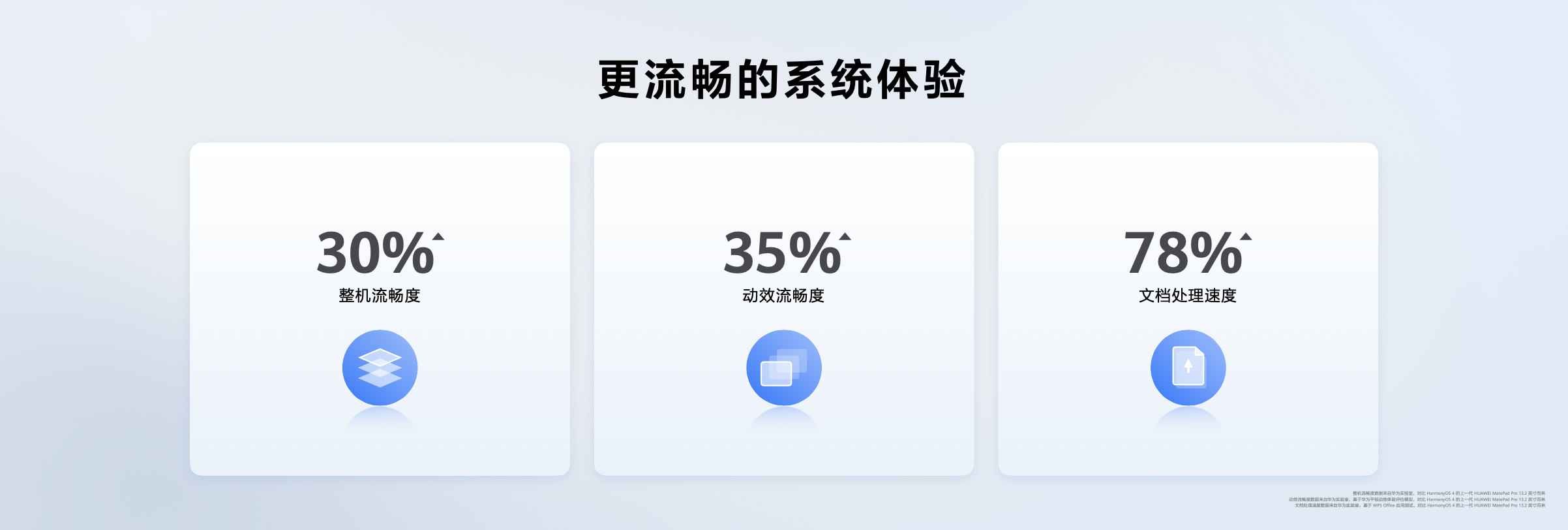 全新HUAWEI MatePad Pro 13.2 英寸搭载创新立体散热架构,有效降低器件温度,确保芯片能够持续稳定运行。相比上一代产品,全新HUAWEI MatePad Pro 13.2 英寸的综合性能提升可达30%以上,基于WPS Office 的文档处理速度提升78%,带来了极致流畅的性能体验。