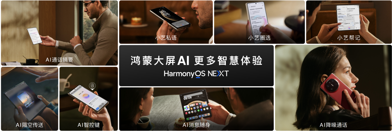 软件体验上,华为已建立起较为成熟的折叠屏生态,平行视界、智慧多窗、智慧外屏、自适应UI引擎等创新都是开行业先河之举,并显著提升了大屏使用效率。 HUAWEI Mate X6进一步挖掘大屏的潜力,带来更自由且便捷的分屏、更强大的手势操作,升级到最新原生鸿蒙操作系统HarmonyOS NEXT后,在盘古大模型加持下,实现了系统级的强大AI能力,为各个子系统赋能,特别是AI小艺智能体针对HUAWEI Mate X6大屏进行了适配,唤醒或触发后,即可智慧识别分屏,并根据屏幕内容回答用户提问或处理文档,左右对照更高效;“全景多窗”功能的加入,有效提升了大屏的操作效率,支持三个应用同时在大屏上运行,顺滑切换,开视频会议、查资料、聊天沟通三不误,一屏可当三屏用,另有心情盒子、时空穿越、隔空投篮等趣味主题,为每次开合增添惊喜,在日常使用中彰显个性,HUAWEI Mate X6以创新的交互、更安全的保障,革新折叠屏体验。
