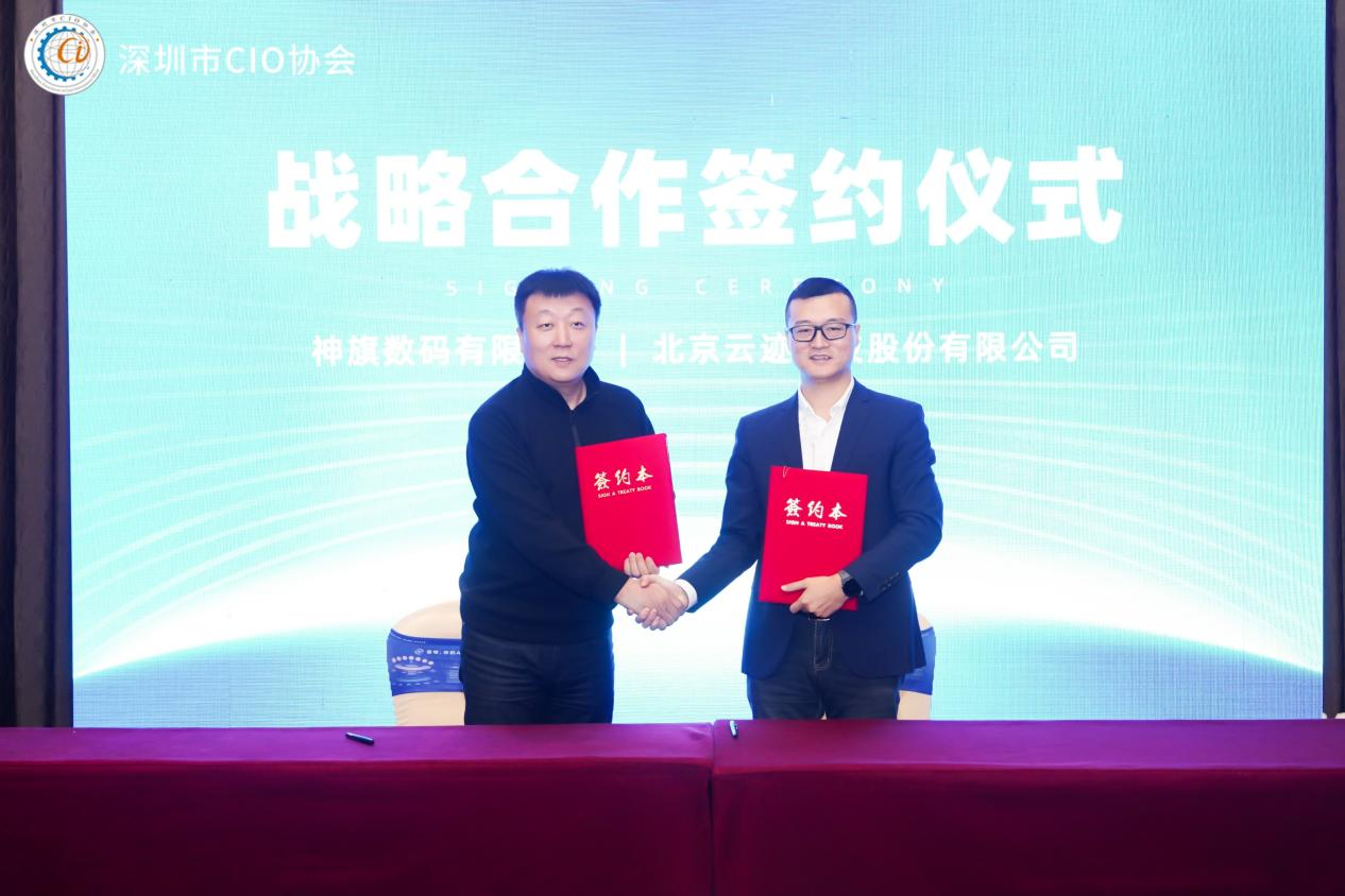 图:神旗数码副总裁都旺与云迹科技CPO李全印代表双方签署合作协议