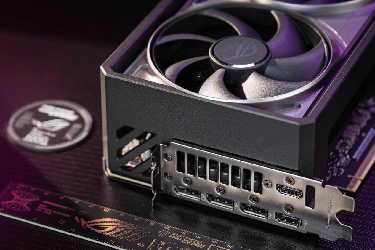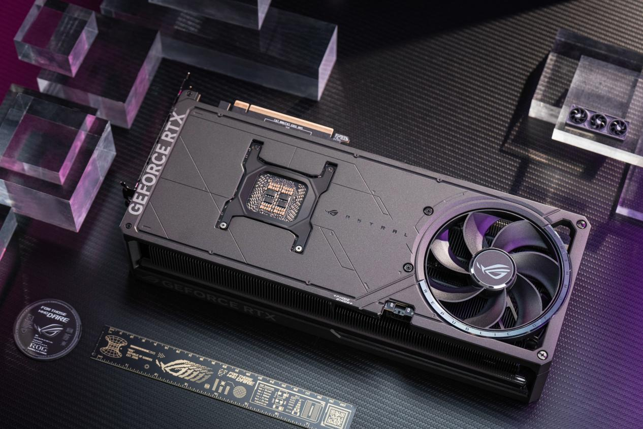 用料部分,显卡配备了80A晶体管,比标准规格高出35%的功率支持,大幅增强了供电稳定性和超频潜力。显卡还使用了保护性电路涂层,采用全自动化制程,有效提升了显卡的可靠性和耐用度!此外,ROG ASTRAL RTX 5090D夜神还配备了超硬的金属外壳,采用压铸金属框架、护盖、背板和304不锈钢I/O挡板,配备显卡支架,让显卡的防护能力达到超高的水准。