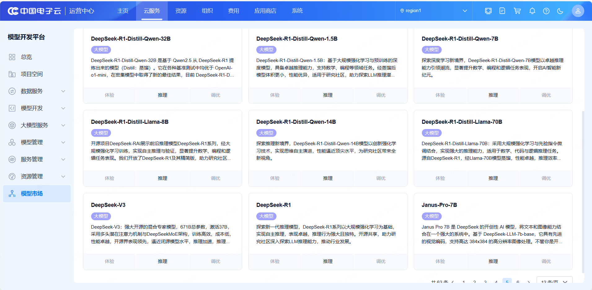 中国电子云作为中国信创云先行者,致力于为用户提供高性能、高可靠性的新质算力基础设施。此次全面适配DeepSeek,通过深度优化,确保DeepSeek在各类硬件环境下的高效运行,为用户提供极致的计算体验,用户可以在中国电子云的平台上无缝使用DeepSeek的各类模型服务。
