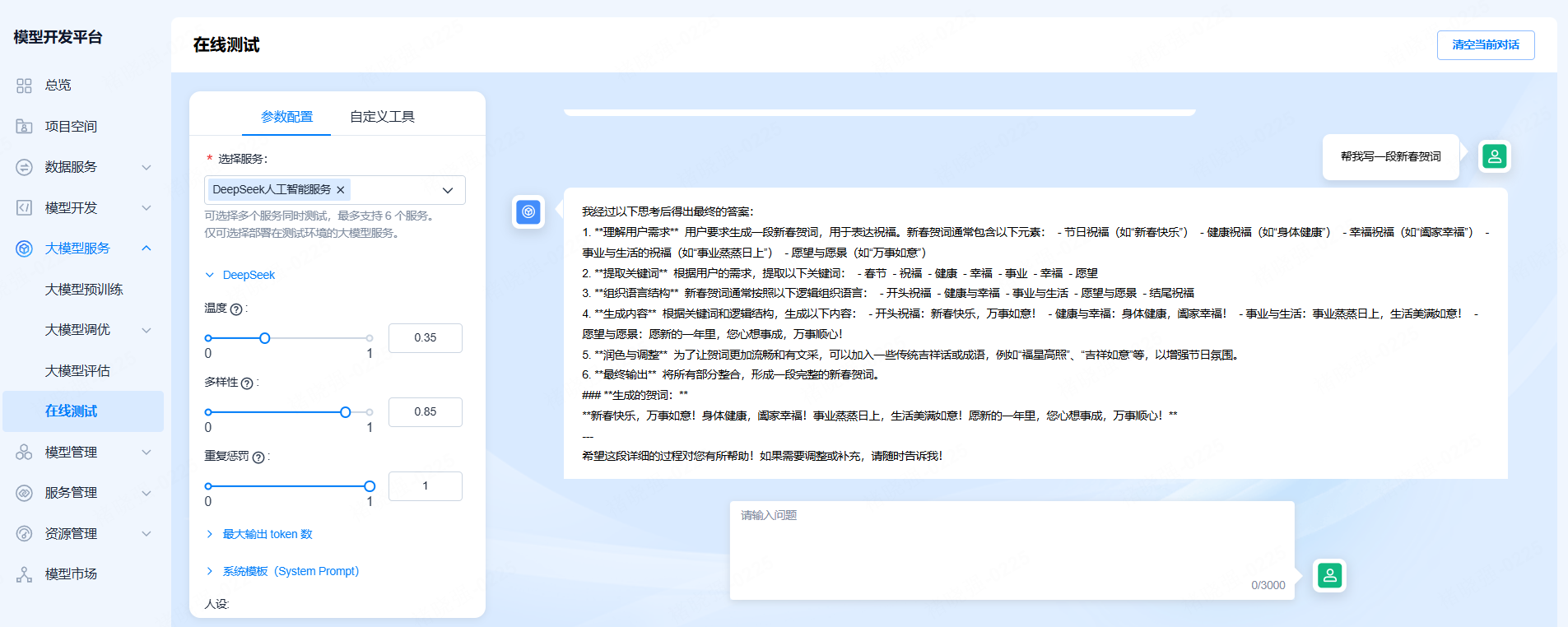 中国电子云面向专业用户提供大模型训练开发能力,实现基于DeepSeek系列大模型,结合用户自己的语料数据以及场景要求,完成垂类大模型的训练、评估、验证和部署。