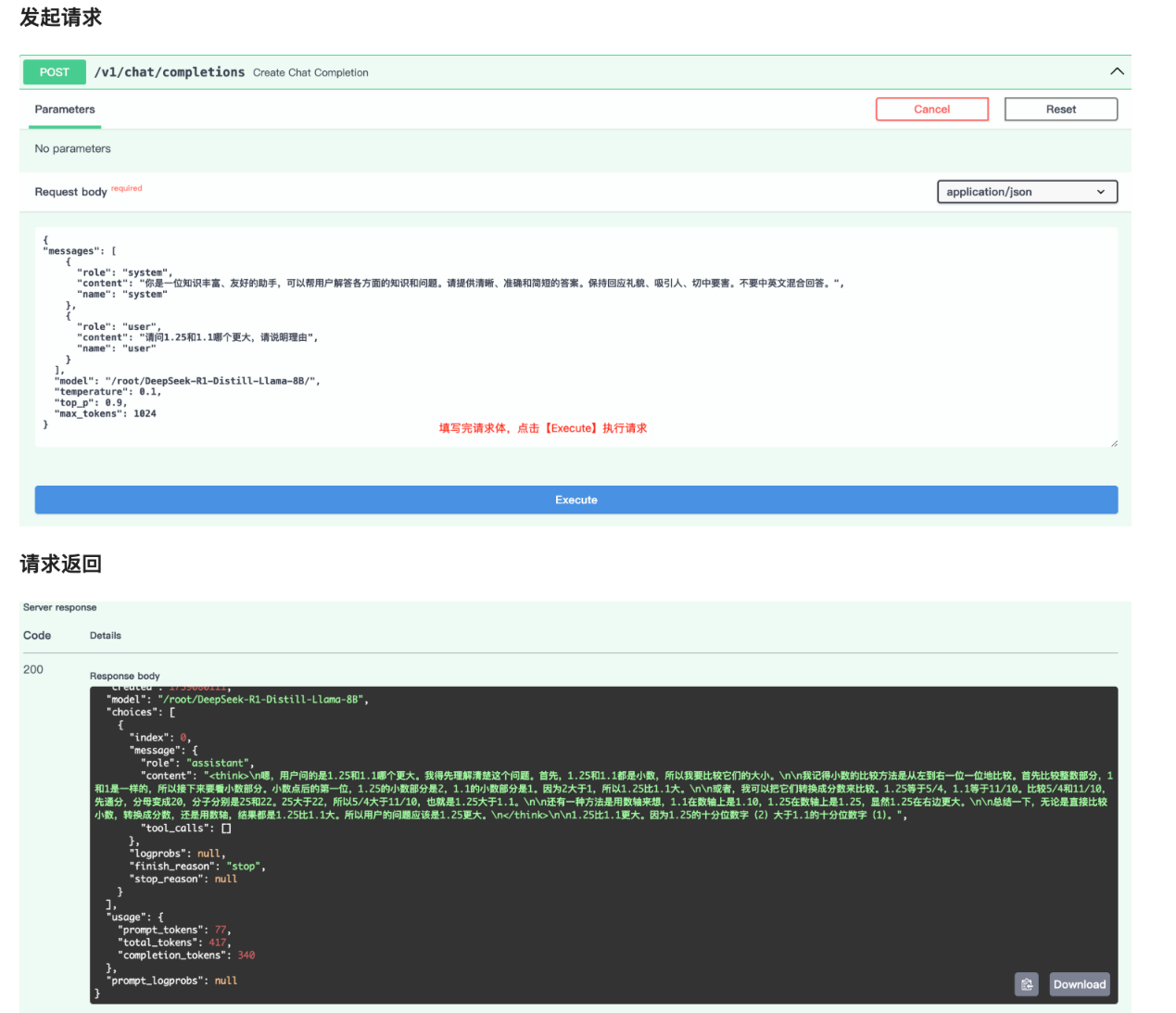 图说:DeepSeek-R1模型镜像快速部署私有化API调用服务界面
