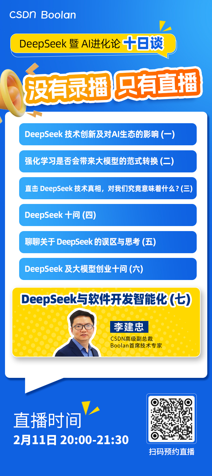目前,栏目已成功完成了六期直播,涵盖了关于DeepSeek的技术创新、行业应用、生态影响和未来展望等多方面内容。每一期的精彩讨论都为观众带来了新的视野和启发。后续更多精彩内容仍在不断推出,敬请期待后续的深入对话与思想碰撞,让我们一起见证AI的未来!